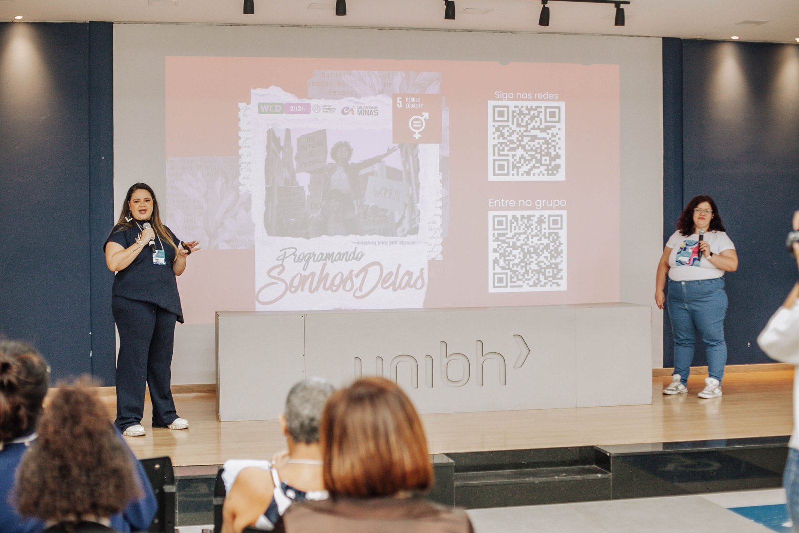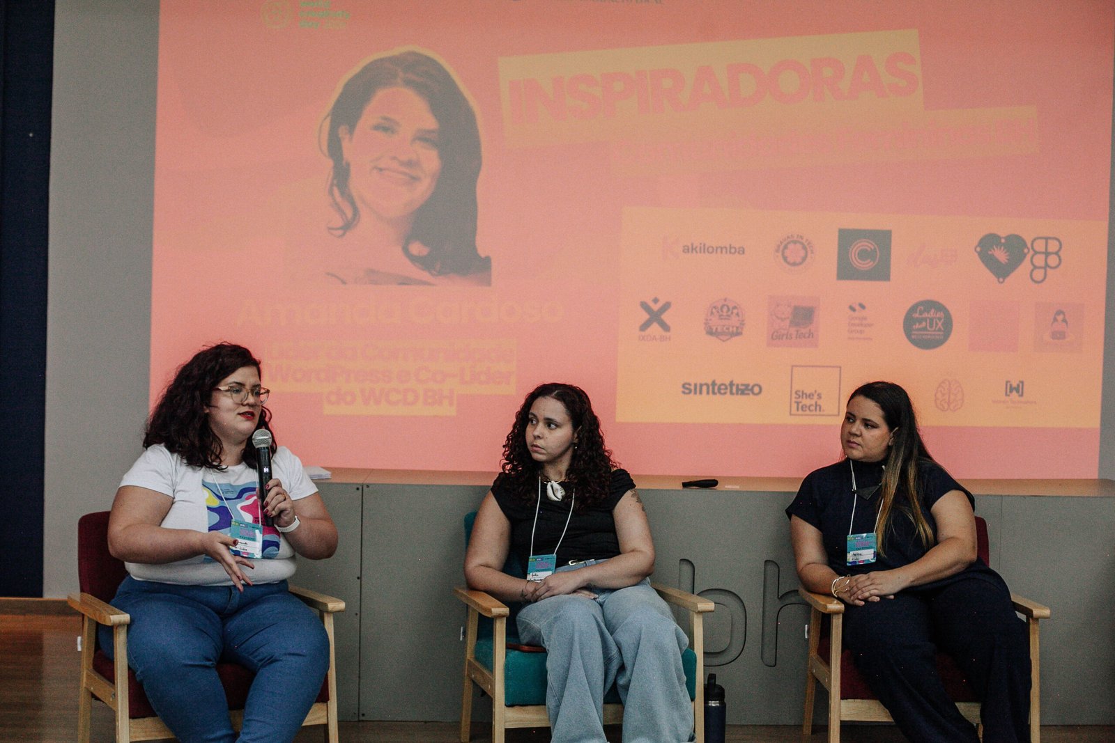 Essa mesma vontade de construir algo maior me levou pra além do meu próprio negócio. Sou organizadora da Comunidade WordPress BH, um espaço onde desenvolvedores e profissionais de tecnologia de Belo Horizonte se encontram, trocam e crescem juntos. E em 2026 fui co-líder do World Creativity Day BH, festival que reuniu empreendedoras, artistas e criativos da cidade em torno de um propósito comum.